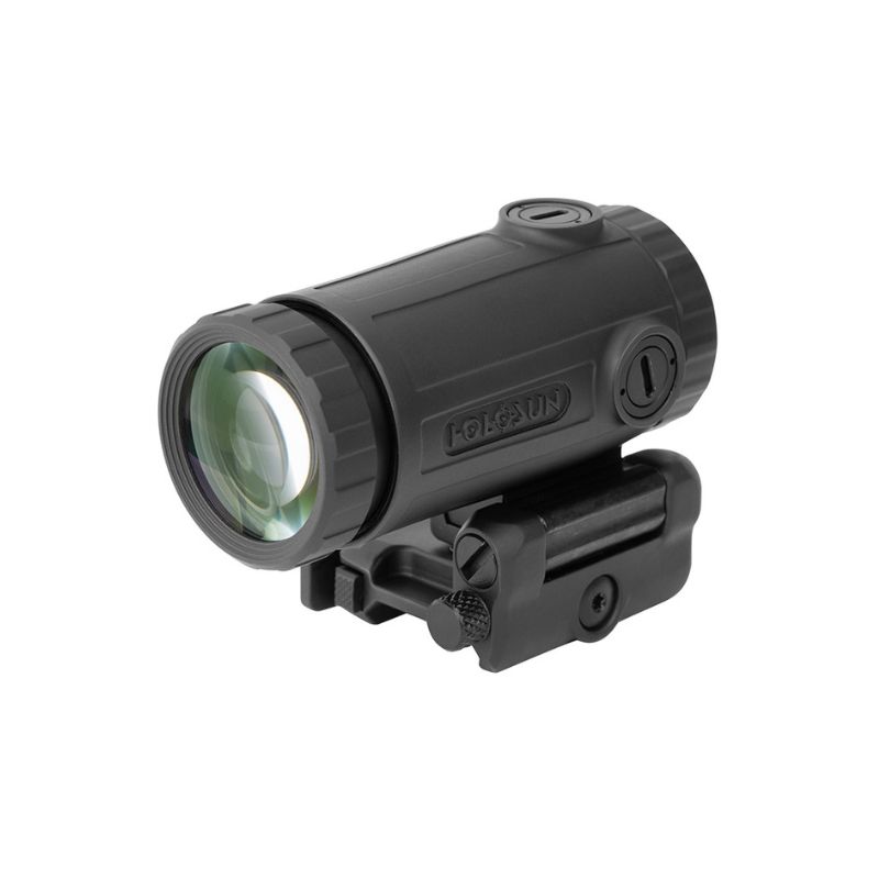 The HM3XT is a compact, titanium bodied, 3X magnifier designed for use in conjunction with a red dot sight. The HM3XT is feature-packed and includes a quick release, ambidextrous, flip-to-side Picatinny rail mount. Holosun includes a spacer with the HM3XT that provides compatibility with absolute and lower 1/3 co-witness dot heights for maximum compatibility. The HM3XT has a generous 2.75” of eye relief, is IP67 certified water resistant, and includes windage and elevation adjustment for precision zeroing to your optic’s zero. The HM3XT also includes a built-in flat driver tool for easy adjustments.